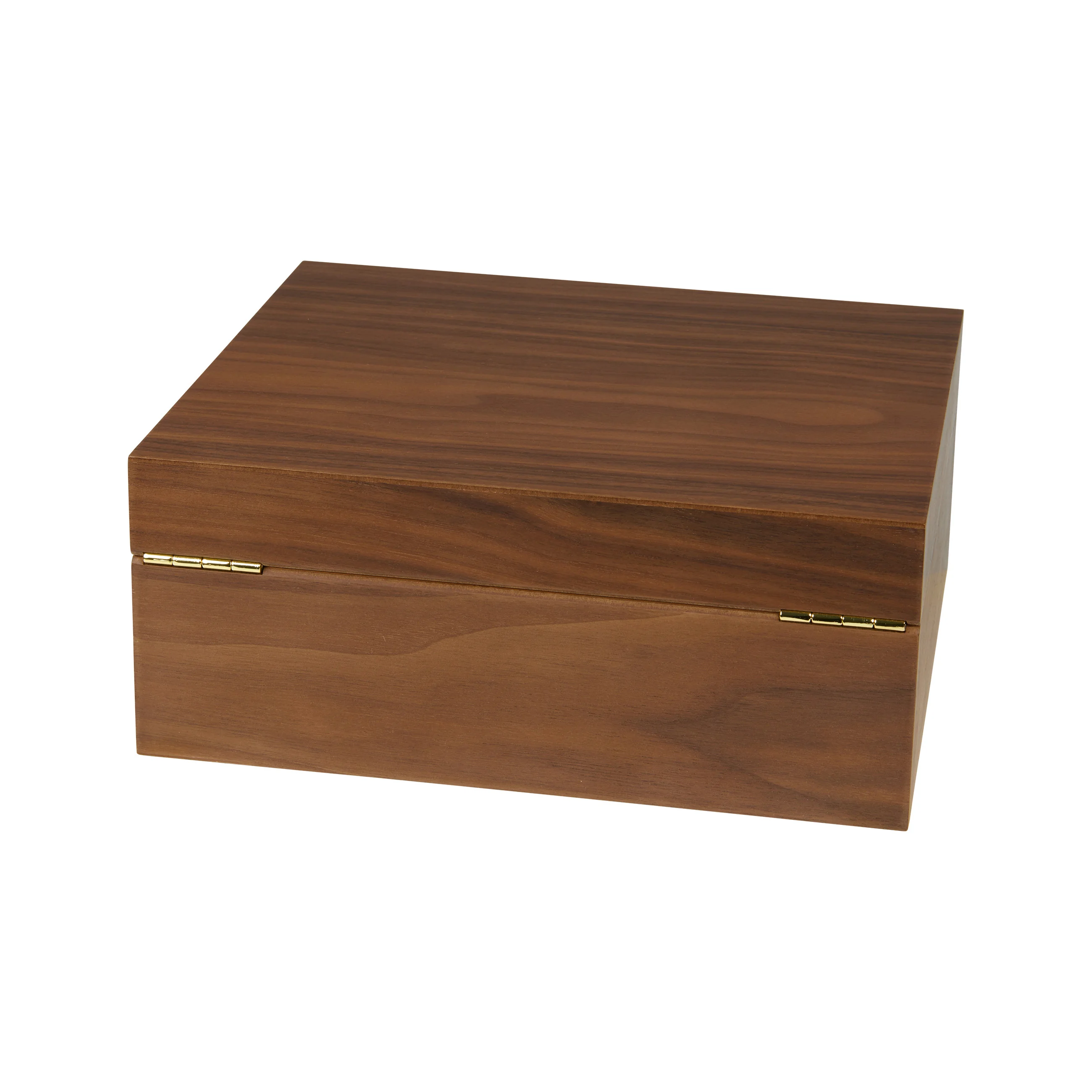 The walnut wood is distinguished by its characteristic grain with warm to dark brown tones. Thanks to its warm and natural appearance, the humidor blends harmoniously into almost any setting. Medium-sized humidors hold up to 75 cigars, providing ample space for your cigar collection.