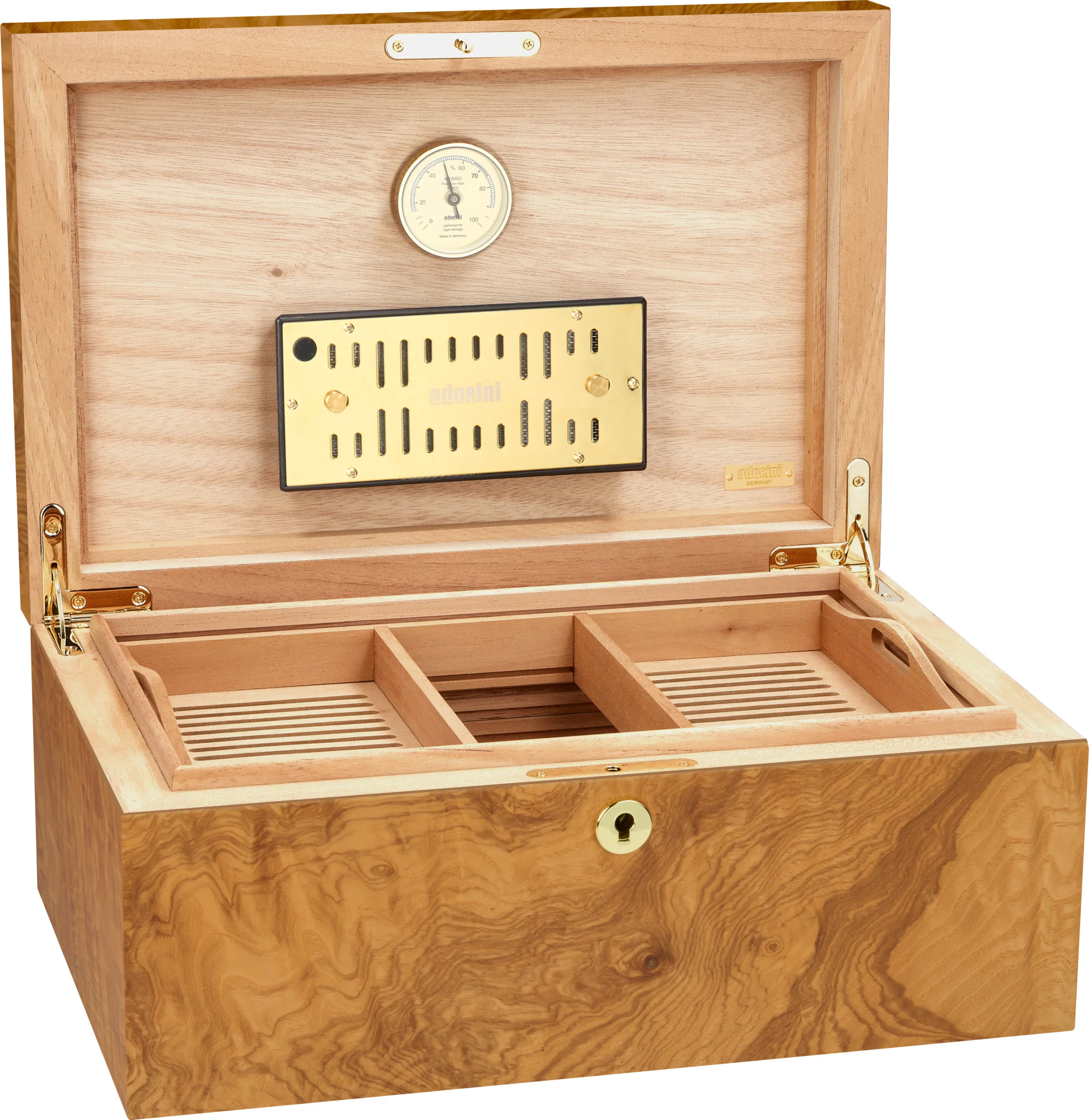 The Olive Ash model impresses with a warm brown color with outstanding grain, creating a particularly elegant effect and blending perfectly into any ambiance. The Grande humidors hold up to 150 cigars, offering ample space for the collection of discerning connoisseurs.