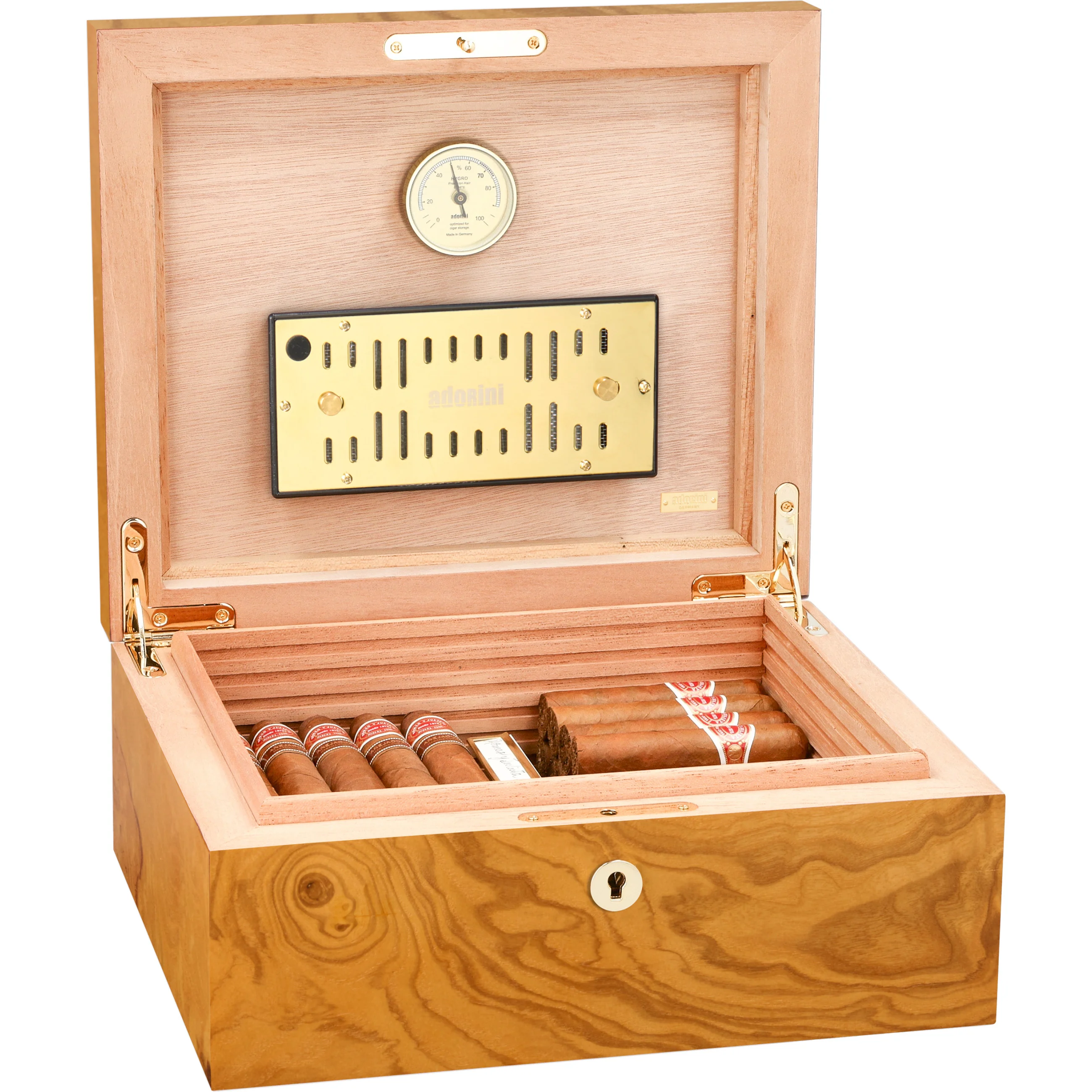 adorini is one of the world's leading humidor brands. Its products are characterized by high-quality materials, sophisticated design, and innovative functionality. Precise hygrometers and humidification systems from adorini can also be found in the world's most exclusive humidors. Cigar aficionados, restaurateurs, and collectors appreciate adorini for its durable quality, stylish craftsmanship, and reliable precision.