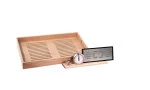 adorini Humidor Triest Basic L Ez a modern és funkcionális humidor az adorini Basic sorozatból, L méretben, matt felületével és gyönyörű erezetével tűnik ki. Körülbelül 150 szivar vagy akár kisebb szivardobozok tárolására is alkalmas, és ideális megoldást kínál szivarjai biztonságos tárolására. A csomag tartalmaz egy analóg higrométert és egy passzív szivacsos párásítót. A higrométer a páratartalmat egy fém spirál segítségével méri, és a párásítóval együtt mágnesesen és rugalmasan csatlakoztatható a humidor fedeléhez. A humidor zárható is, hogy védve legyen a jogosulatlan hozzáféréstől. Dupla kulcskészlet tartozik hozzá, így pótkulcsa is van a biztonság kedvéért. A humidor belsejében matt ezüst zsanérok találhatók, valamint különösen erős tömítőperem, amely az optimális páratartalom megtartását biztosítja. Egy függőleges elválasztó teszi lehetővé a belső tér további elkülönítését. Egy további, levehető, több szintű állvány esztétikus és funkcionális módon rendezi a humidort. Ez eltávolítható, és szellőzőbarázdákkal van ellátva az optimális páratartalom keringéséhez.