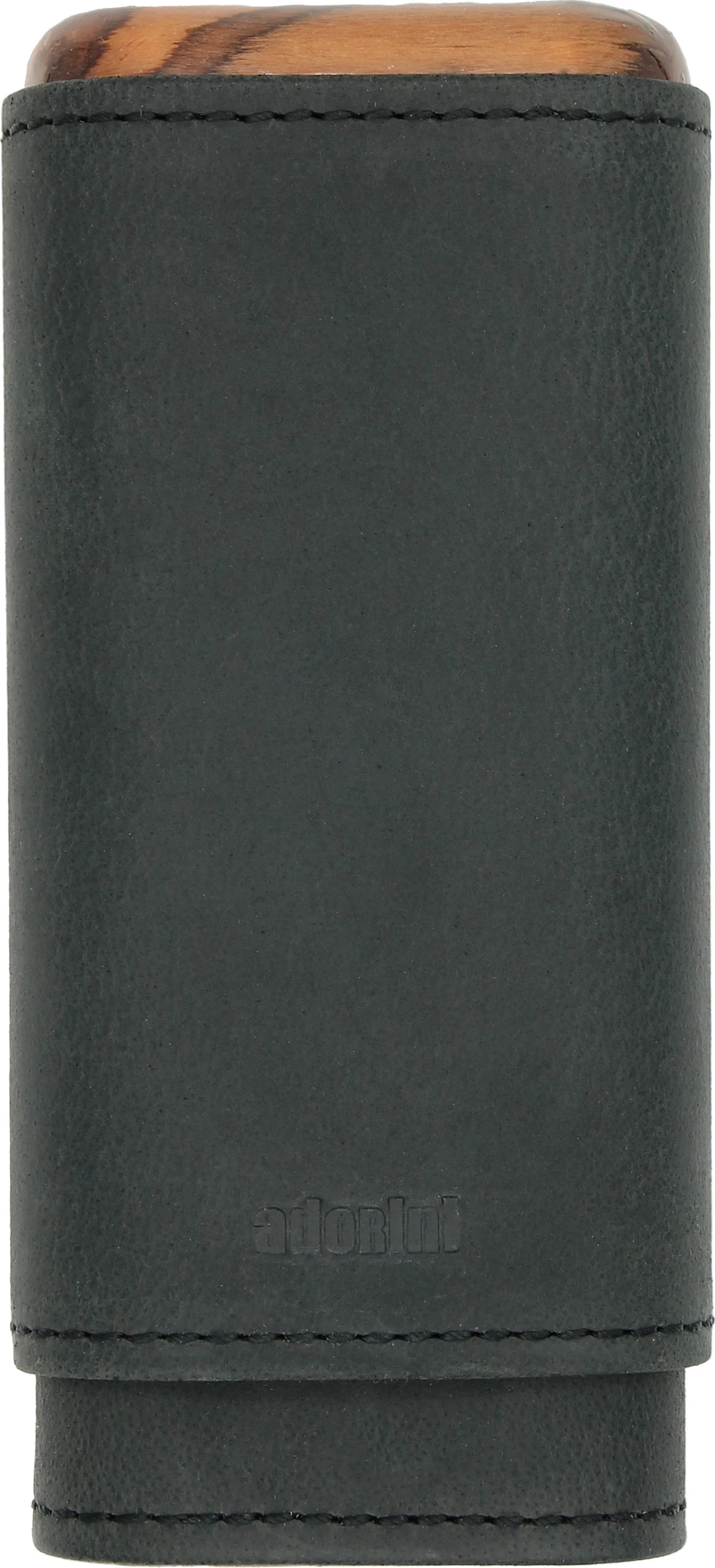 Adorini valódi bőr szivartok, fekete, 2-3 szivar tárolására, teteje fából készült