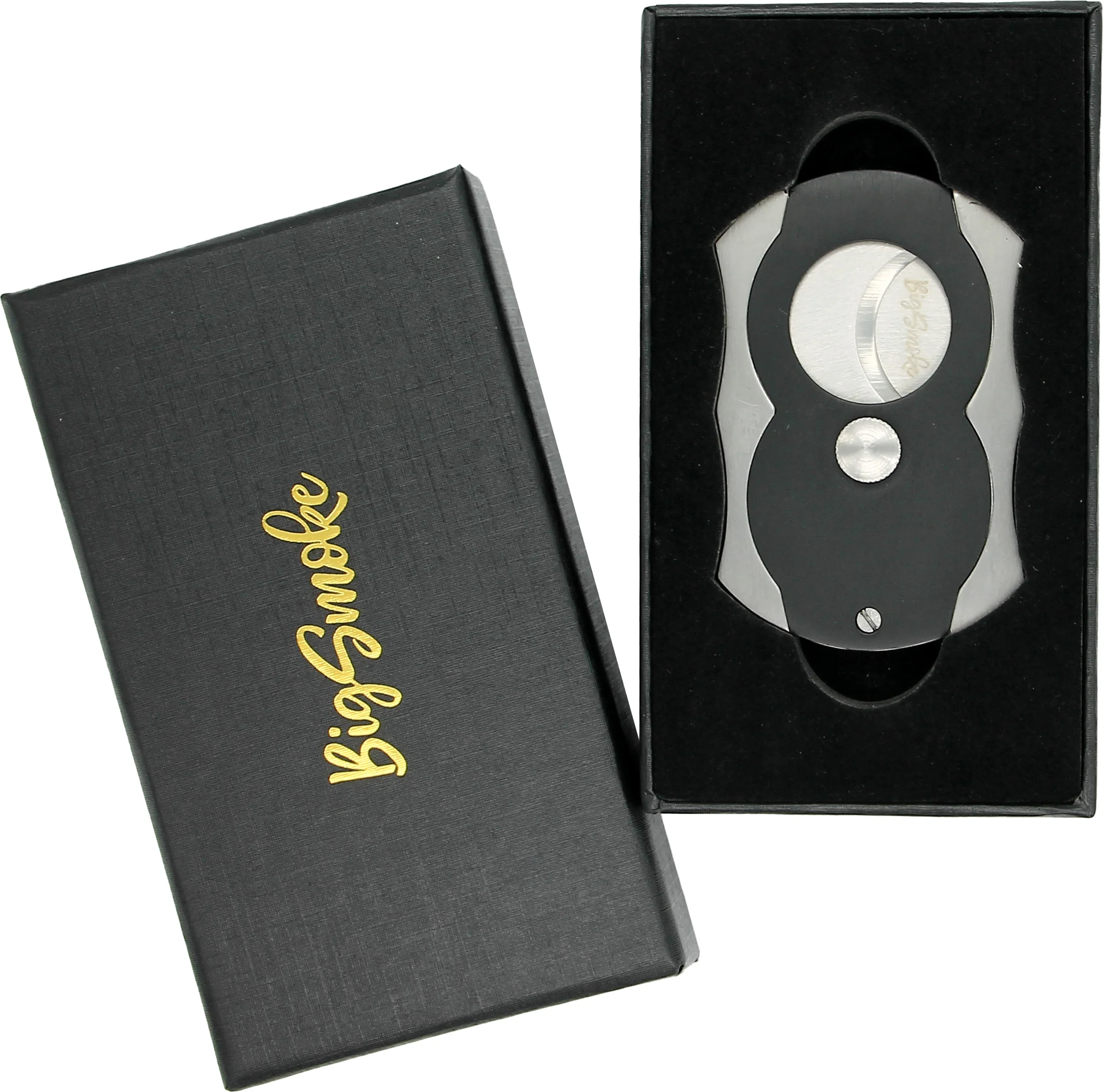 - BigSmoke márkájú dupla pengés szivarvágó fekete és ezüst színben