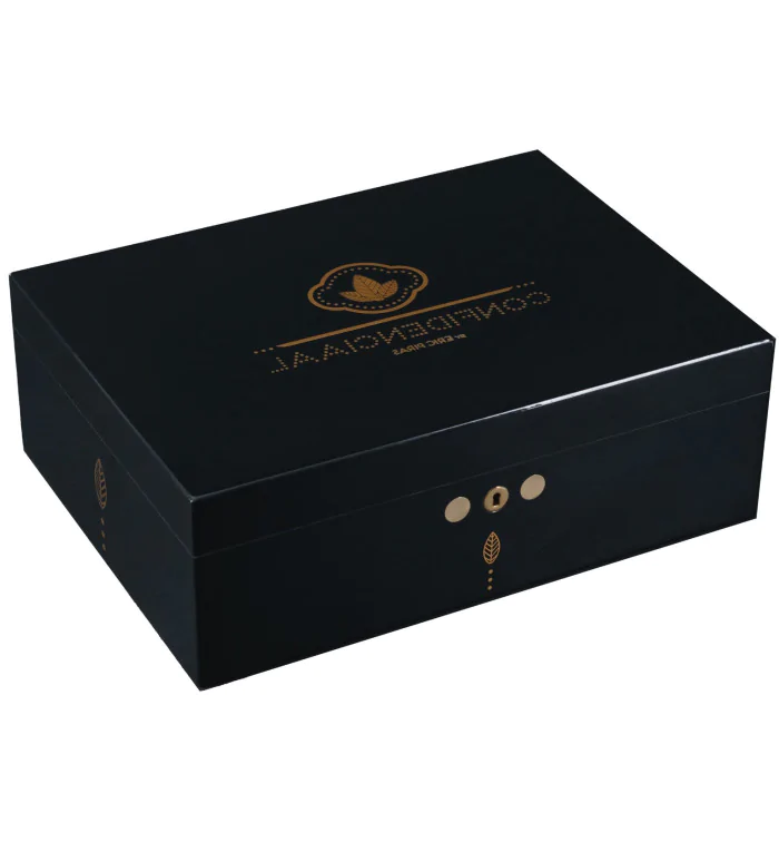 **Részletek és jellemzők:** A Confidenciaal Humidor kivehető tálcával rendelkezik a szivarok szervezett tárolásához. A 125 szivar nagyvonalú befogadóképességével tökéletes választás a szenvedélyes rajongók és gyűjtők számára.