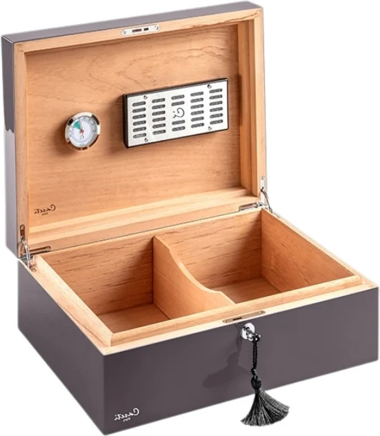 A humidor teste MDF-ből készült, belül cédrusfával van furnérozva, amely hozzájárul a szivarok optimális tárolásához és érleléséhez.