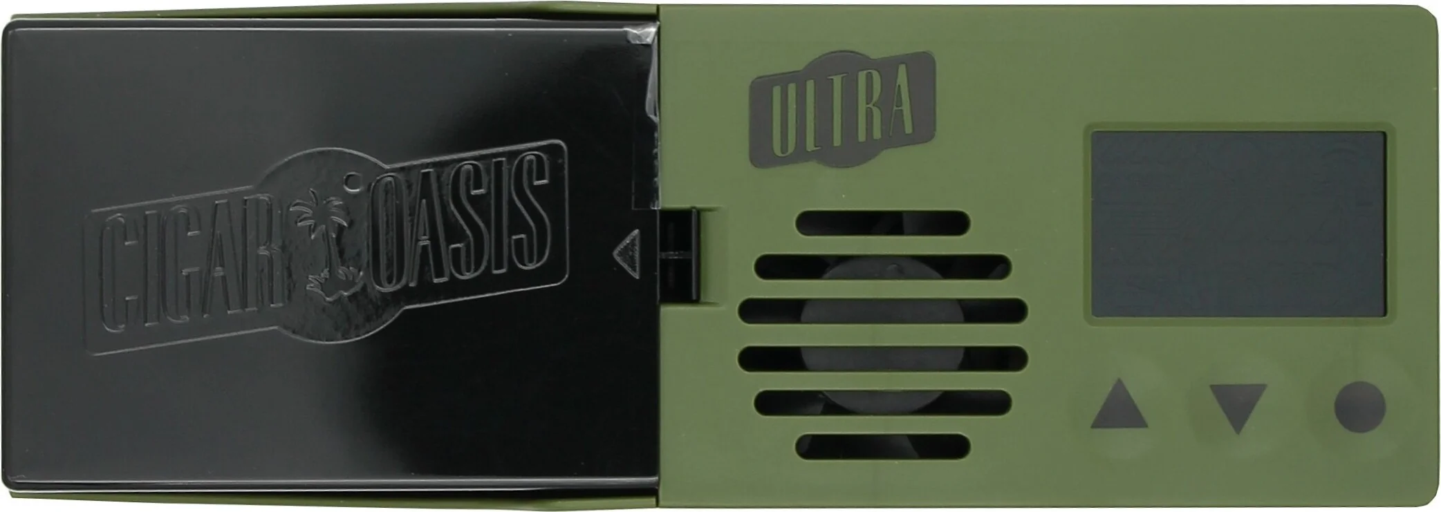 The Cigar Oasis Ultra 4.0 is a latest-generation electronic humidifier (as of 2025) and was specially developed for tabletop humidors with a capacity of 50 to 150 cigars. The device comes in a modern olive green and impresses with its ultra-slim, space-saving design.