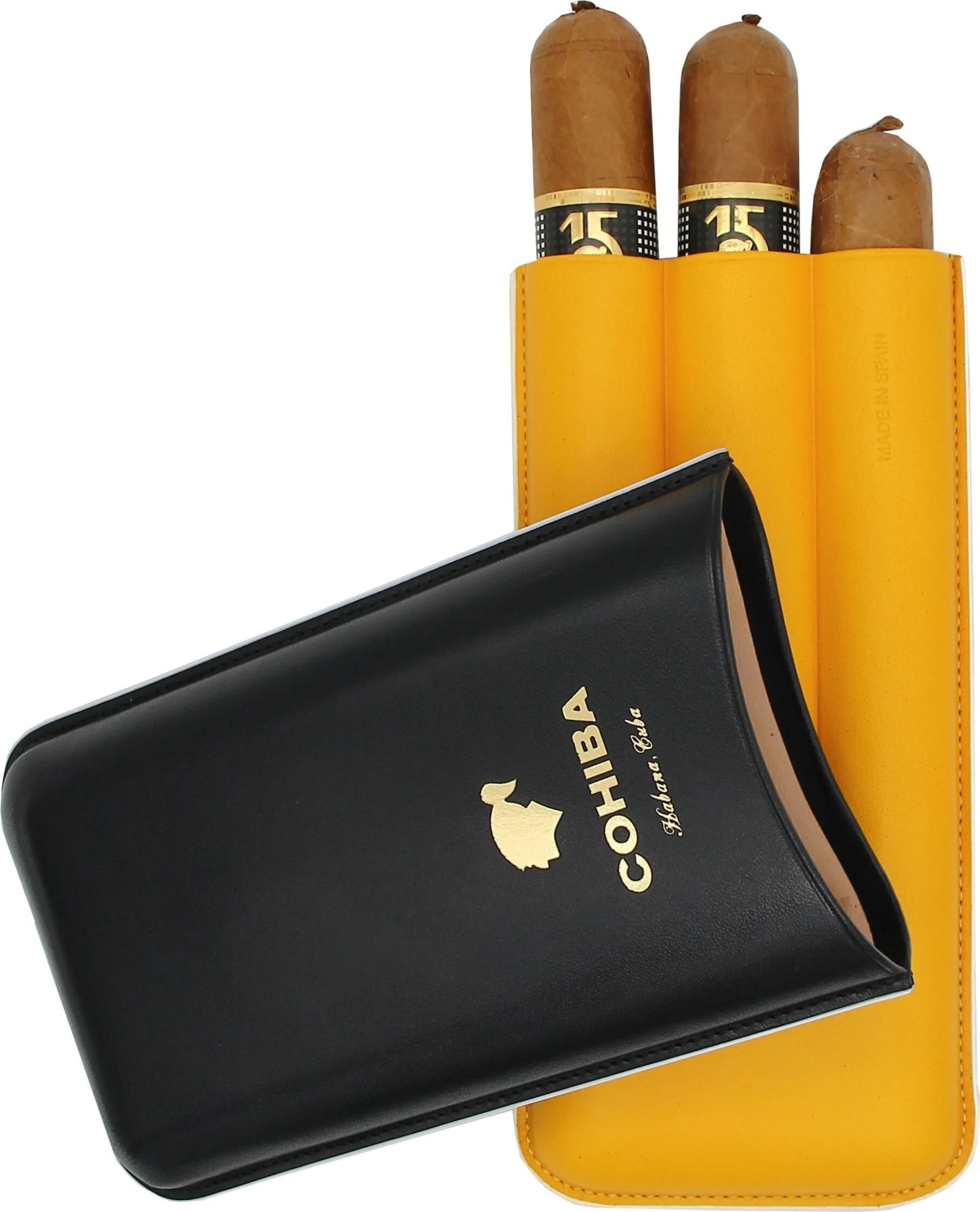 - High-quality color combination of black, yellow, and white in iconic Cohiba design