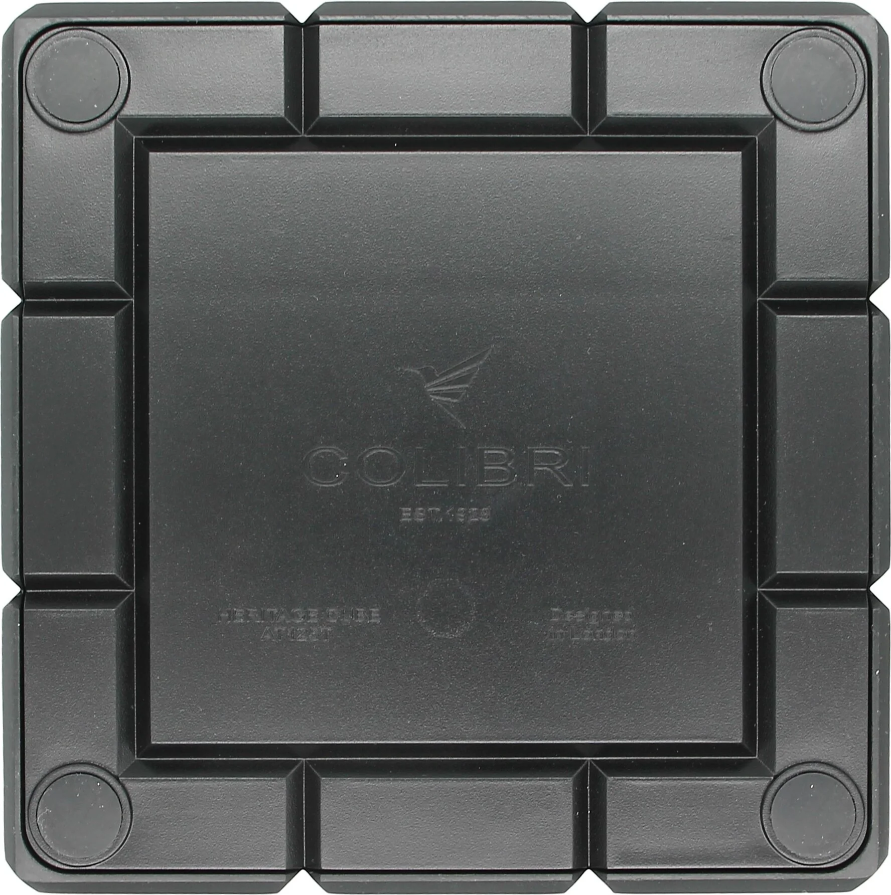 The Colibri Heritage Cube in elegant matte black is an ashtray that combines modern aesthetics with practical functionality. Made of robust metal and featuring the signature geometric design, it fits perfectly into any stylish cigar setting, especially as an elegant complement to a Colibri Heritage humidor.