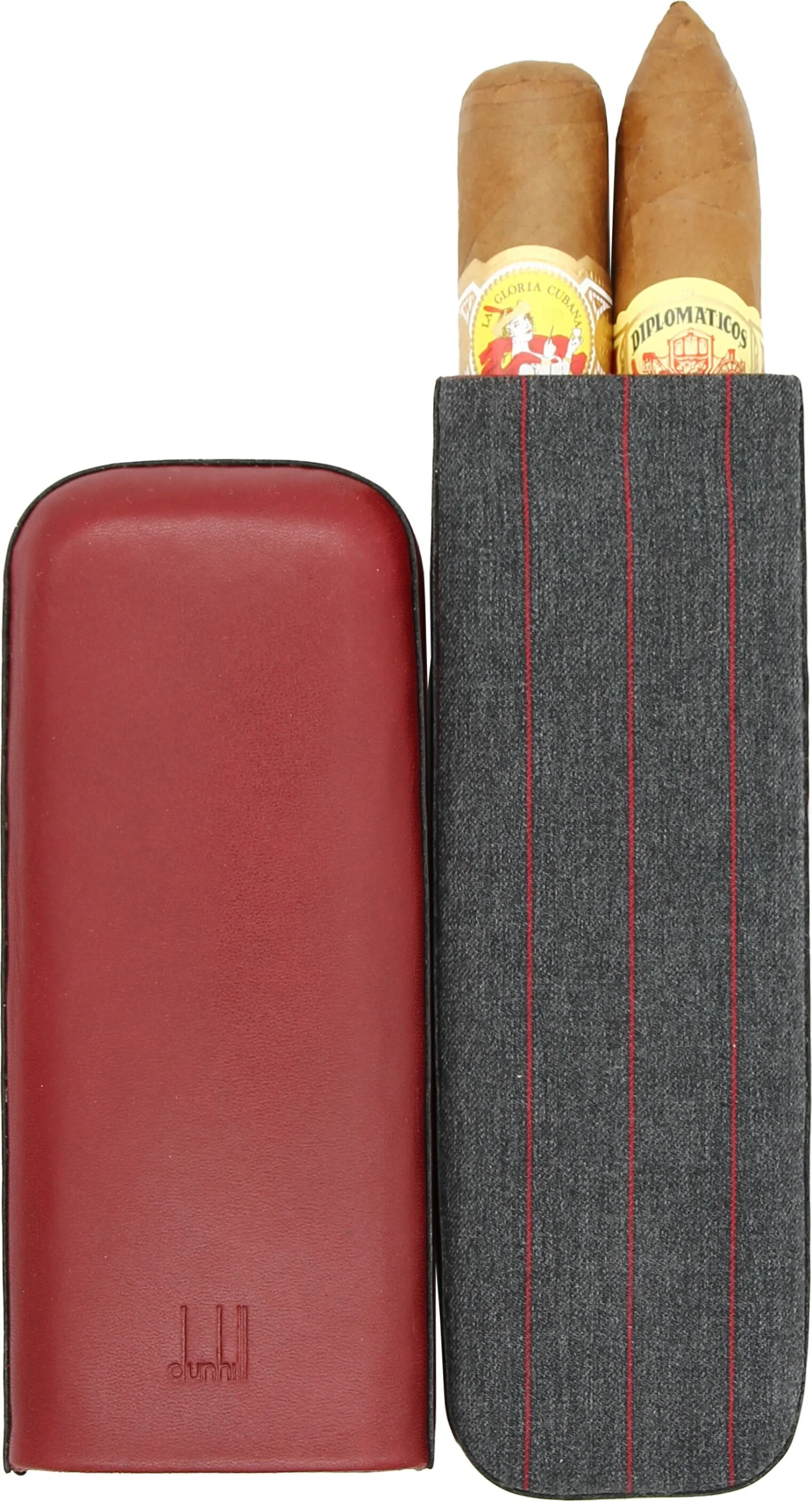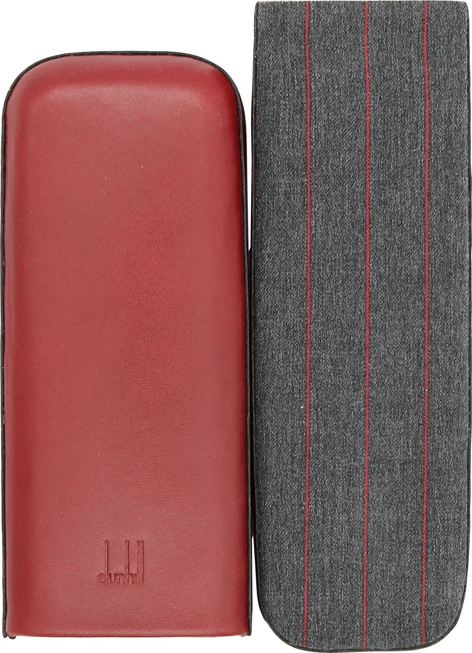 This sliding case combines the finest red leather with a fabric base. An exceptionally elegant combination rarely seen in the cigar world. The front features the unmistakable Dunhill brand embossing.