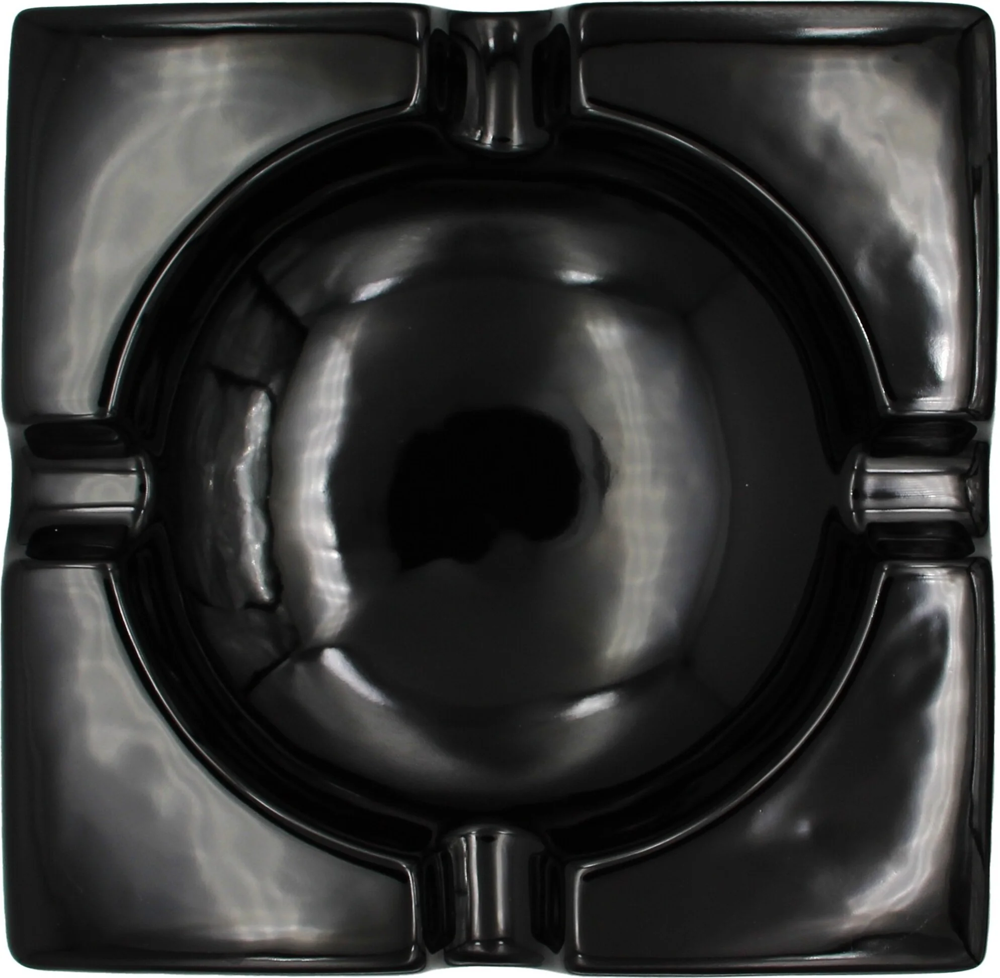 This square porcelain ashtray from Habanos impresses with its elegant black finish and the German inscription "Unique since 1492", which refers to the founding year of Habanos and adorns the front of the ashtray. It is ideal for enjoying cigars in company, as it features four generously sized cigar rests.