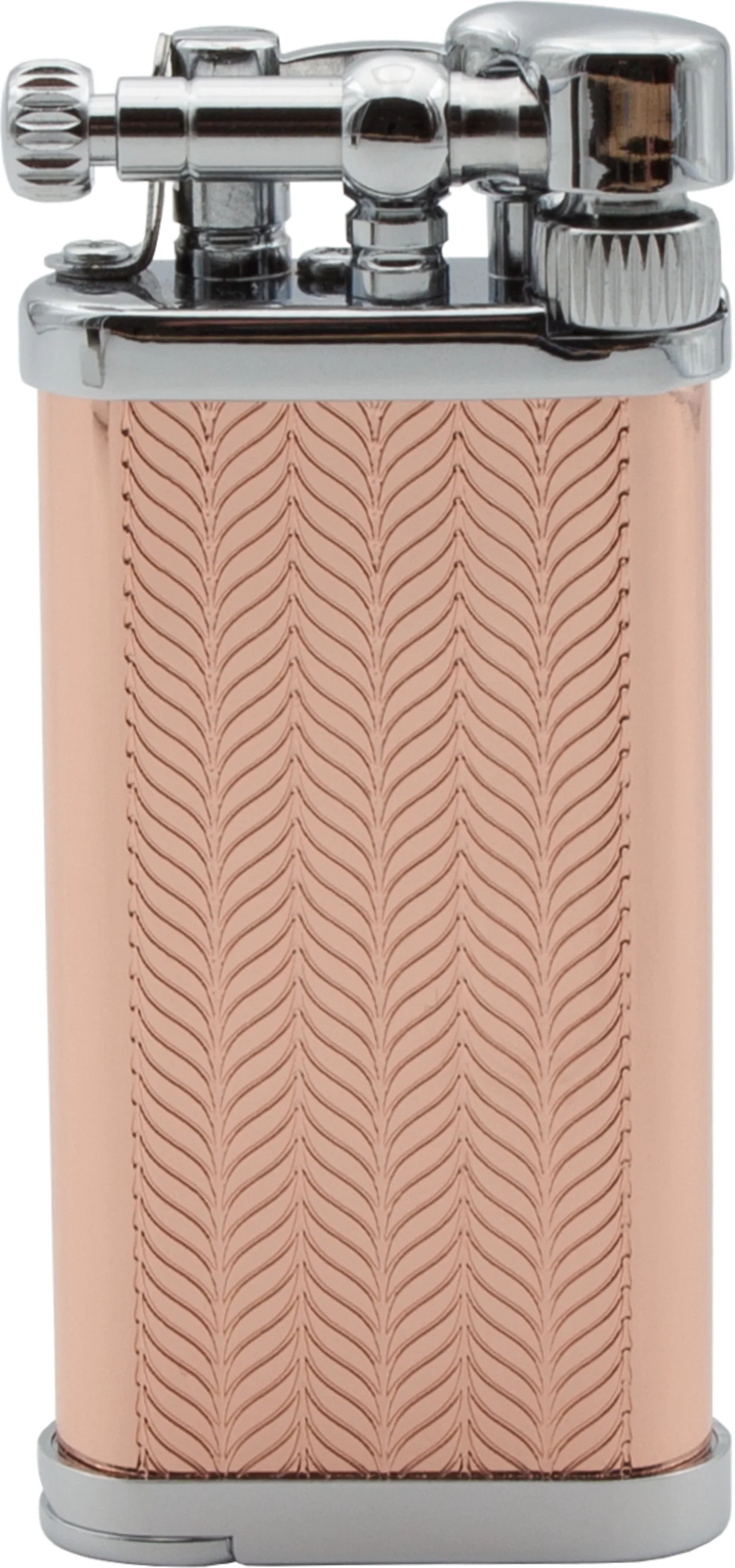 Az IM Corona Old Boy rózsaarany egy időtlen pipás öngyújtó elegáns megjelenéssel. A rózsaarany ház és a fényes króm elemek kombinációját stílusos hullámminta egészíti ki – igazi ékszerdarab a stílusos pipázók számára.