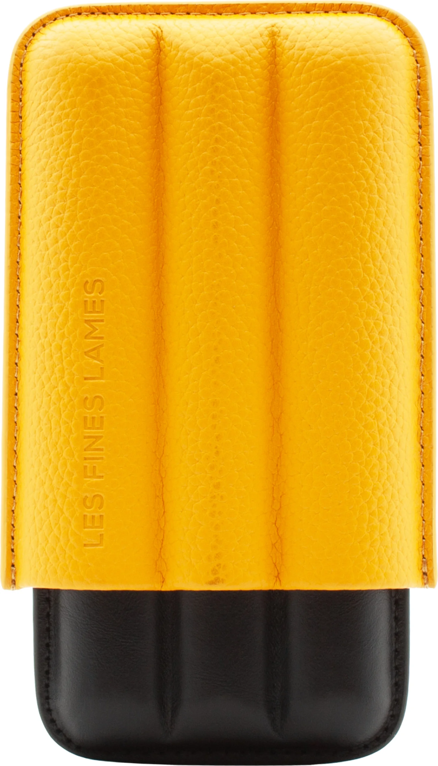 A Les Fines Lames szivartok háromrészes sárga színben egy stílusos kiegészítő a fiatal francia Les Fines Lames márkától, amely elsősorban kiváló minőségű szivarkéseiről vált nemzetközileg elismertté. Ez a kétrészes tok sima és erezett valódi bőr kombinációjával hoz létre visszafogott, mégis elegáns dizájnt – ideális igényes ínyencek számára.