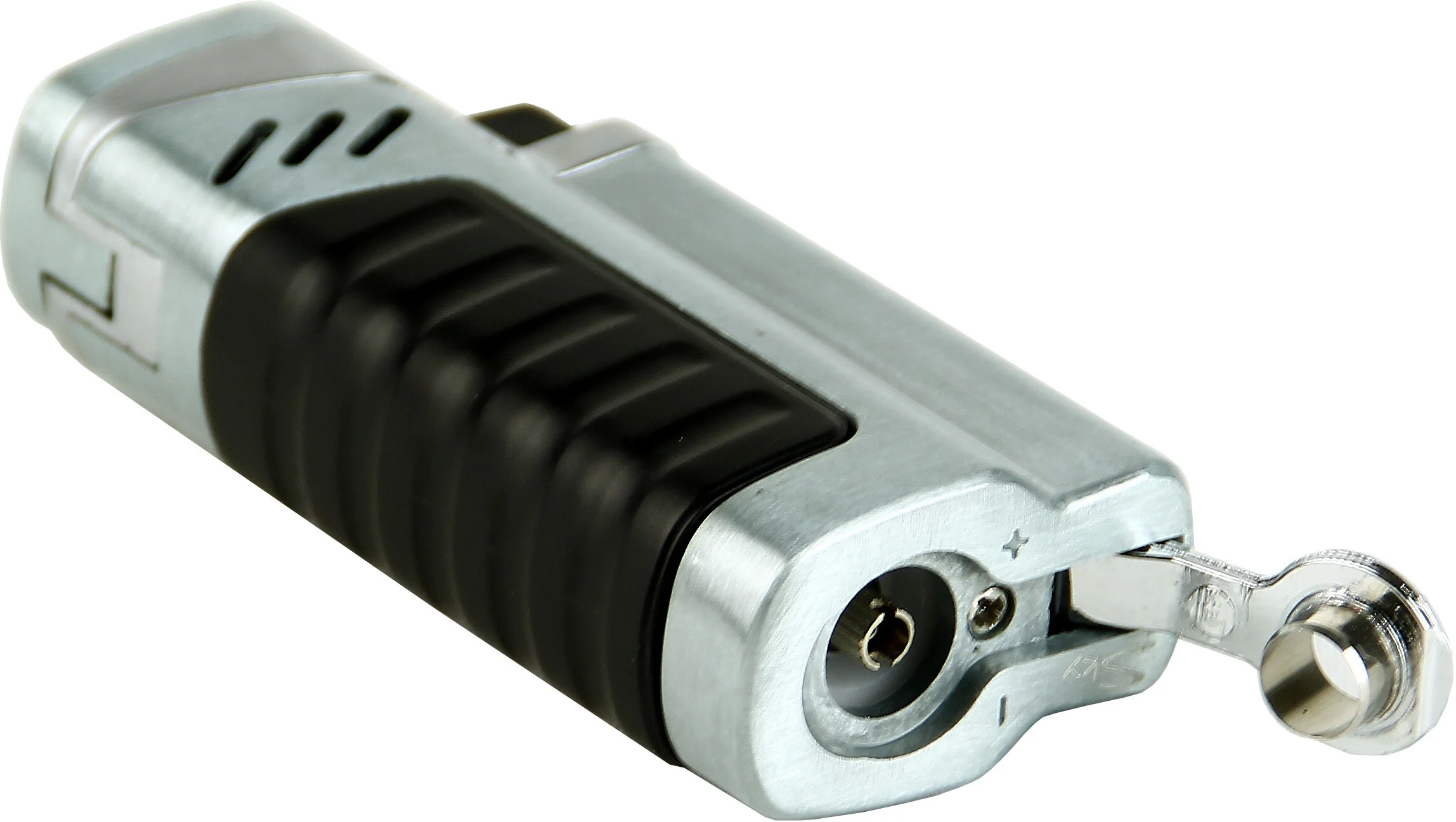- **Elegáns krómozott dizájn:** Az öngyújtó stílusos krómozott teste fekete markolatelemekkel rendelkezik, amely ötvözi az esztétikát a funkcionalitással.