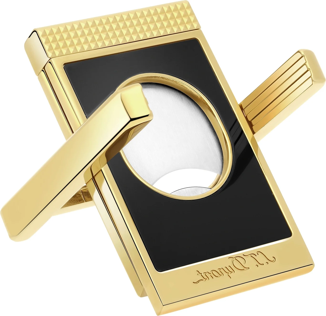Egy exkluzív szivarkiegészítő a francia luxusgyártó, az S.T. Dupont kínálatából, amely egyedi kialakításában ötvözi az eleganciát és a funkcionalitást. Ez az elegáns dupla pengéjű vágó fényes fekete és arany színben pompázik, miközben az éles rozsdamentes acél pengék elegáns kontrasztot alkotnak a luxuskivitelű házzal.