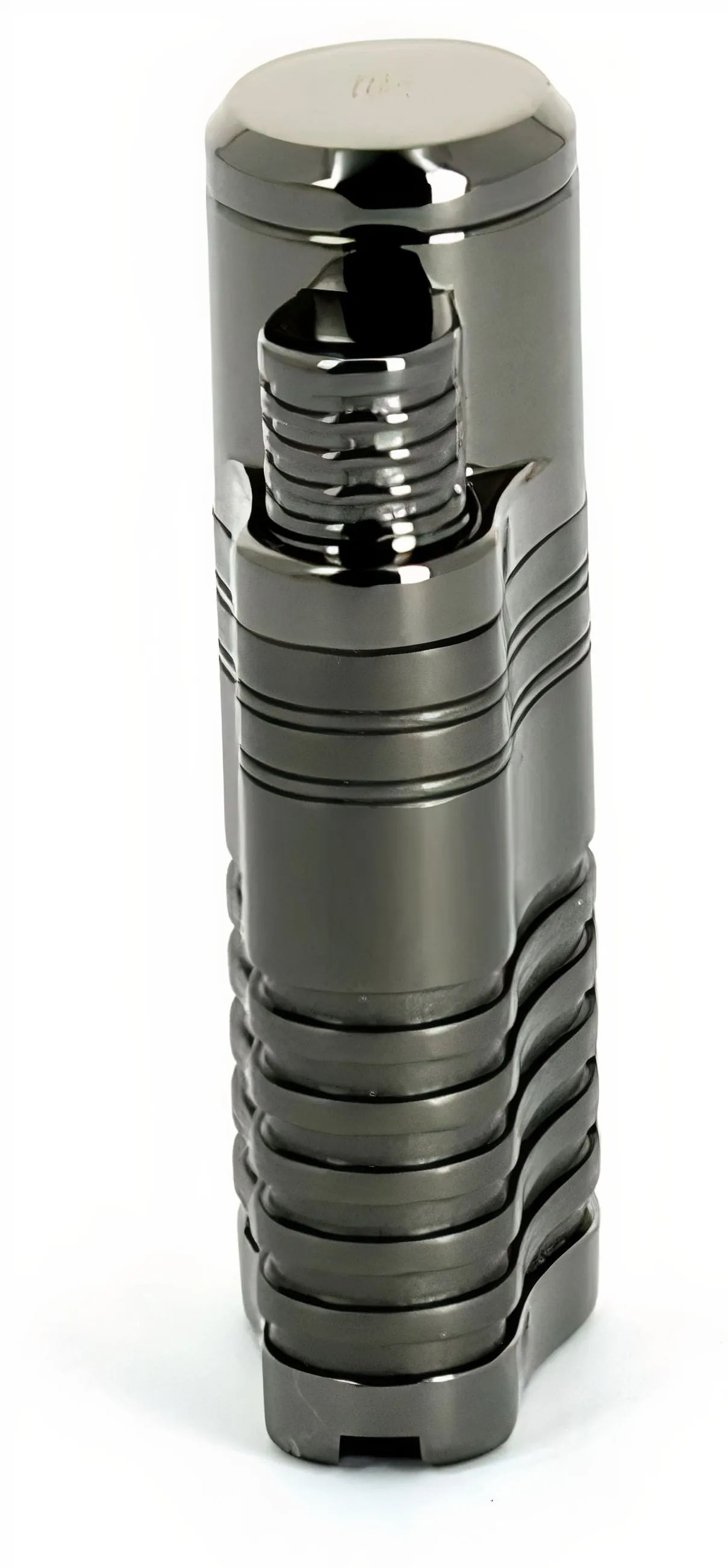 Az öngyújtó négy sugárlángja a hüvelykujj egyetlen megnyomásával működésbe lép, mindegyik összeolvad a másikkal, hogy létrehozza a végső szélálló lángot. Ezzel az intenzív hővel páratlan gyorsasággal és hatékonysággal gyújthatja meg szivarjait, függetlenül az idegesítő széllökésektől. Van egy praktikus szivarszúró-vágó is, amely alulról kihajtható, így ezzel az egyetlen könnyen hordozható eszközzel vághatja és gyújthatja meg szivarjait.
