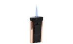 A **Xikar Jet Lighter Astral fekete és rózsaarany színben** egy elegáns öngyújtó a nemzetközileg elismert Xikar márkától. A matt fekete színű, csillogó rózsaarany díszítőelemekkel ellátott öngyújtó igazi szemet gyönyörködtető. Az oldalsó lekerekített rózsaarany díszítő oldalak elegáns és fényűző megjelenést kölcsönöznek neki. Egylángú sugárgyújtó, erős, szélálló lánggal.