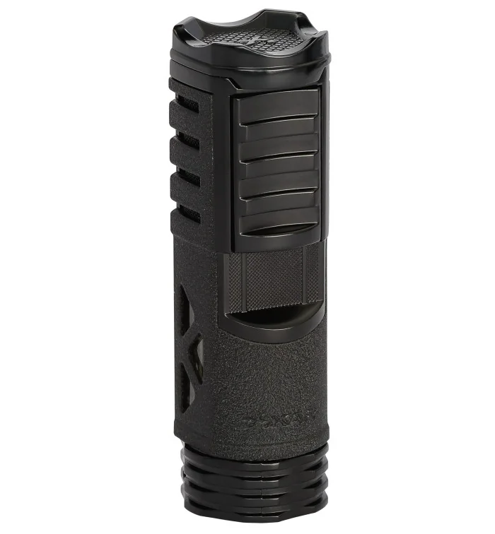 A **Xikar Tactical Jet öngyújtó fekete színben** egy modern jet-öngyújtó erőteljes, egysugaras lánggal. Robusztus kialakításának és kifinomult kivitelezésének köszönhetően ideális társ a szabadtéri tevékenységekhez. Első pillantásra a Tactical Jet egy kis zseblámpára emlékeztet, de rendkívüli tapintása és megjelenése felkelti a nagy kalandok iránti vágyat. Az öngyújtó a sima fémfelületeket szemcsés felületekkel ötvözi, amelyek együttesen sportos és modern megjelenést eredményeznek.